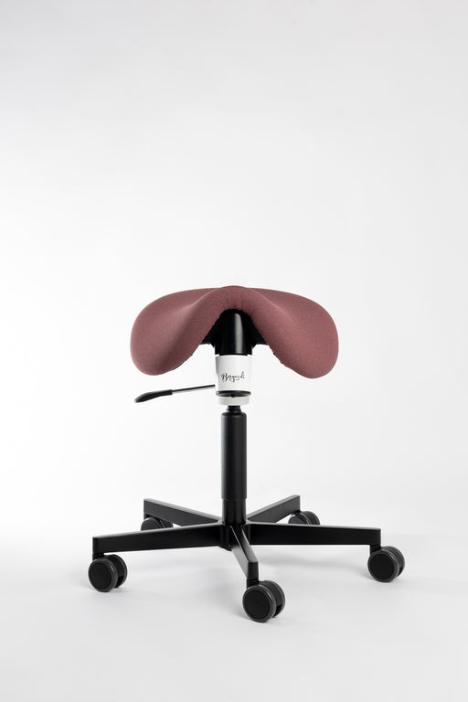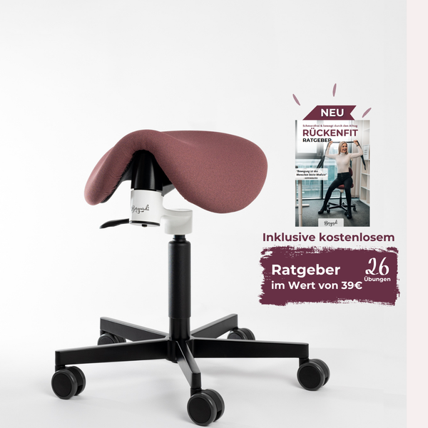 Der ergonomische Sattelstuhl Aurelia unterstützt eine aufrechte Sitzhaltung und beugt Rückenschmerzen aktiv vor.