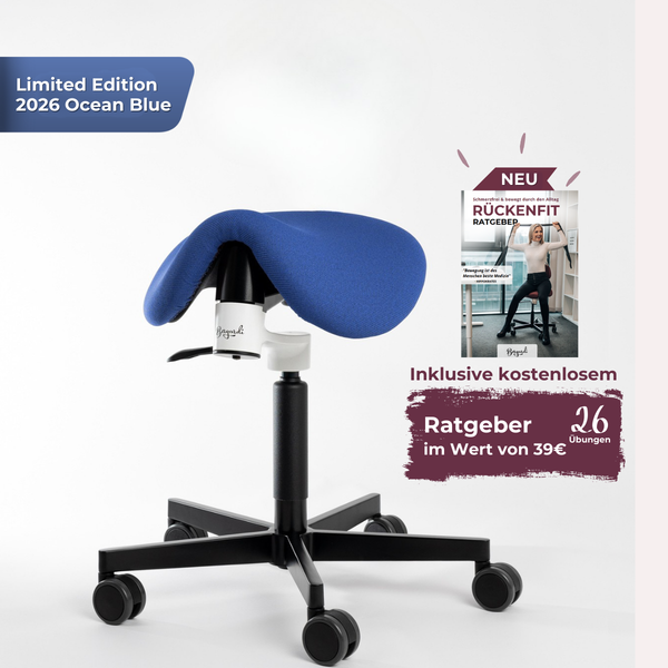 Der Sattelstuhl Aurelia entlastet die Wirbelsäule und fördert eine gesunde, aufrechte Sitzhaltung. Die ergonomische Sattelform kippt das Becken 4° nach vorne und unterstützt die natürliche Krümmung der Wirbelsäule. Dank dynamischer Bewegungen werden Verspannungen gelöst und Rückenschmerzen spürbar reduziert.
